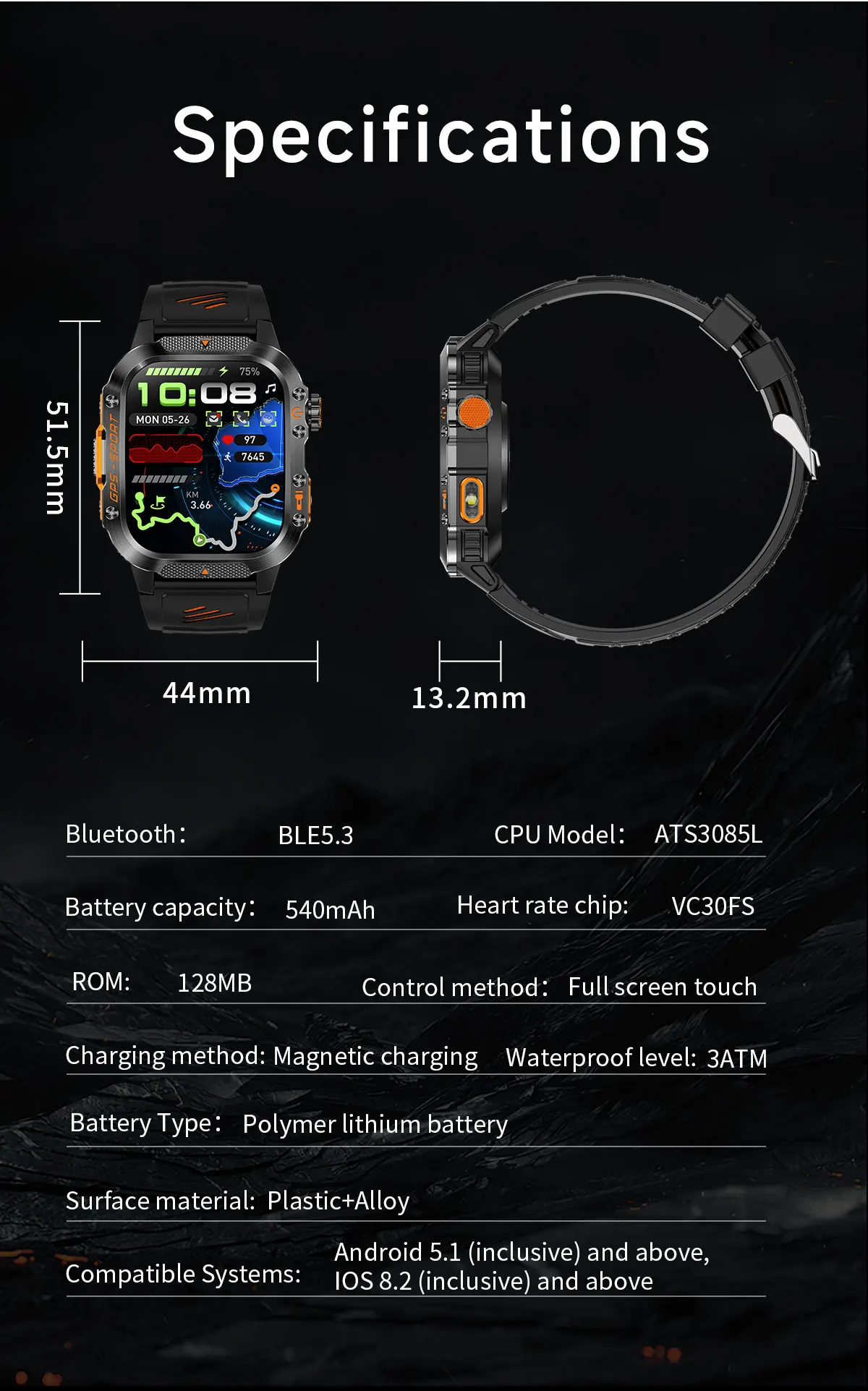 Reloj Inteligente Militar con GPS Real y Brújula – Outdoor 3ATM